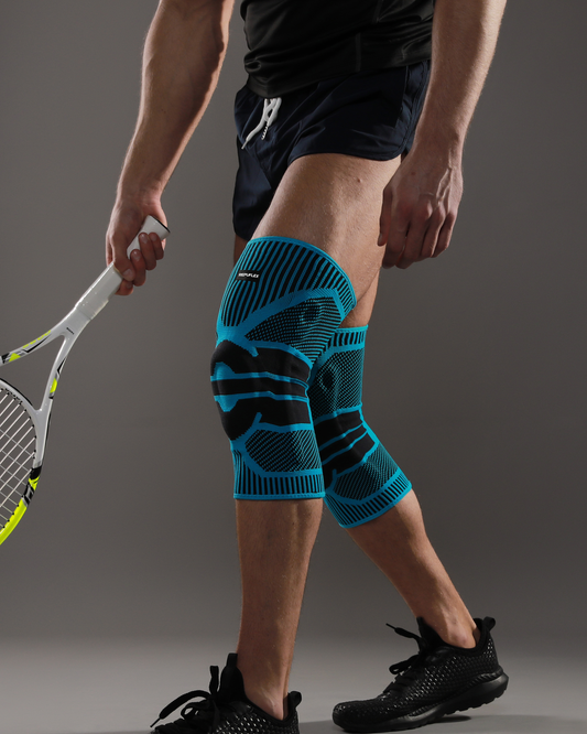1 rodillera individual con funda de compresión Pro (unisex) con almohadilla de gel de silicona y estabilizadores laterales.