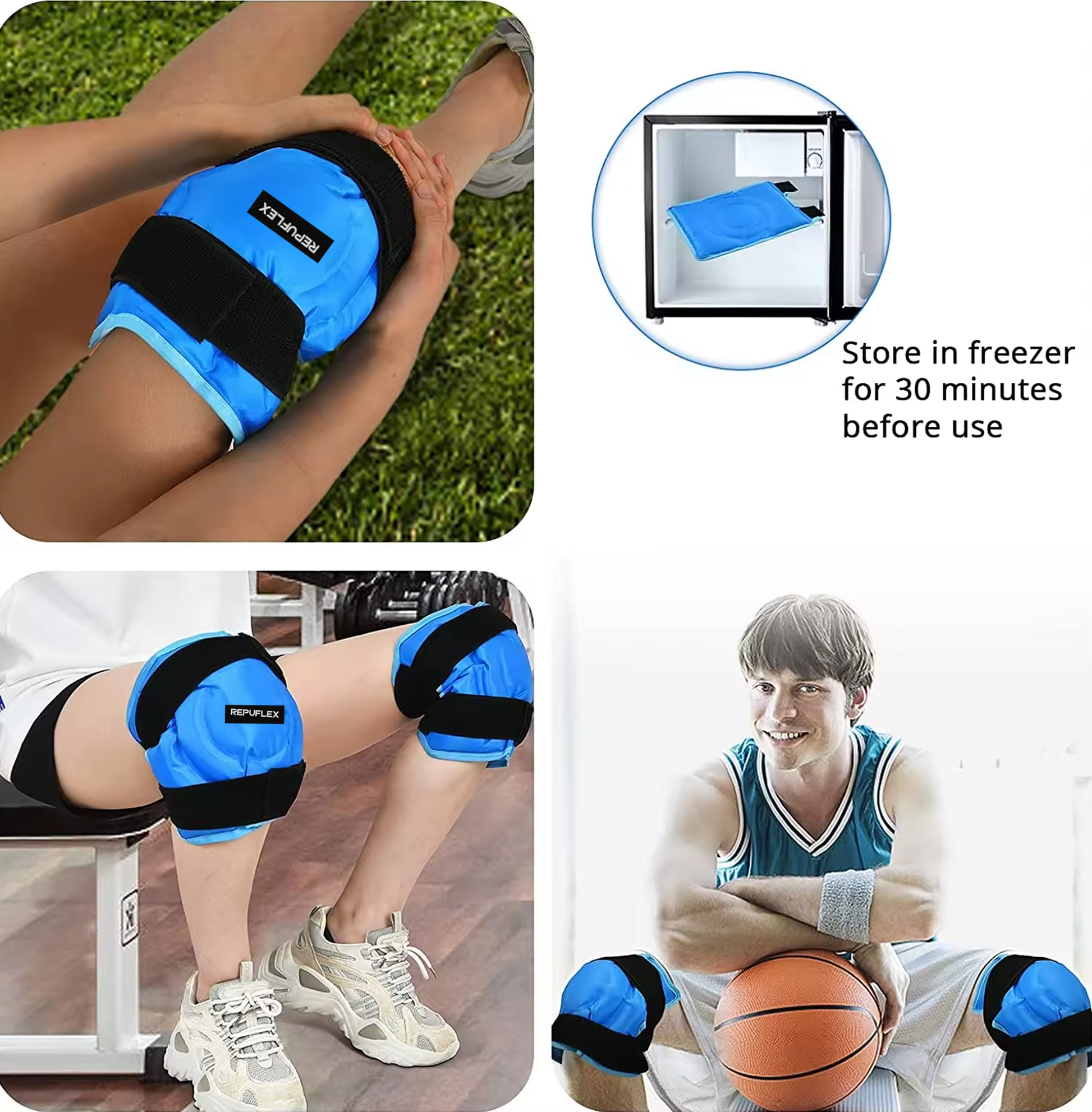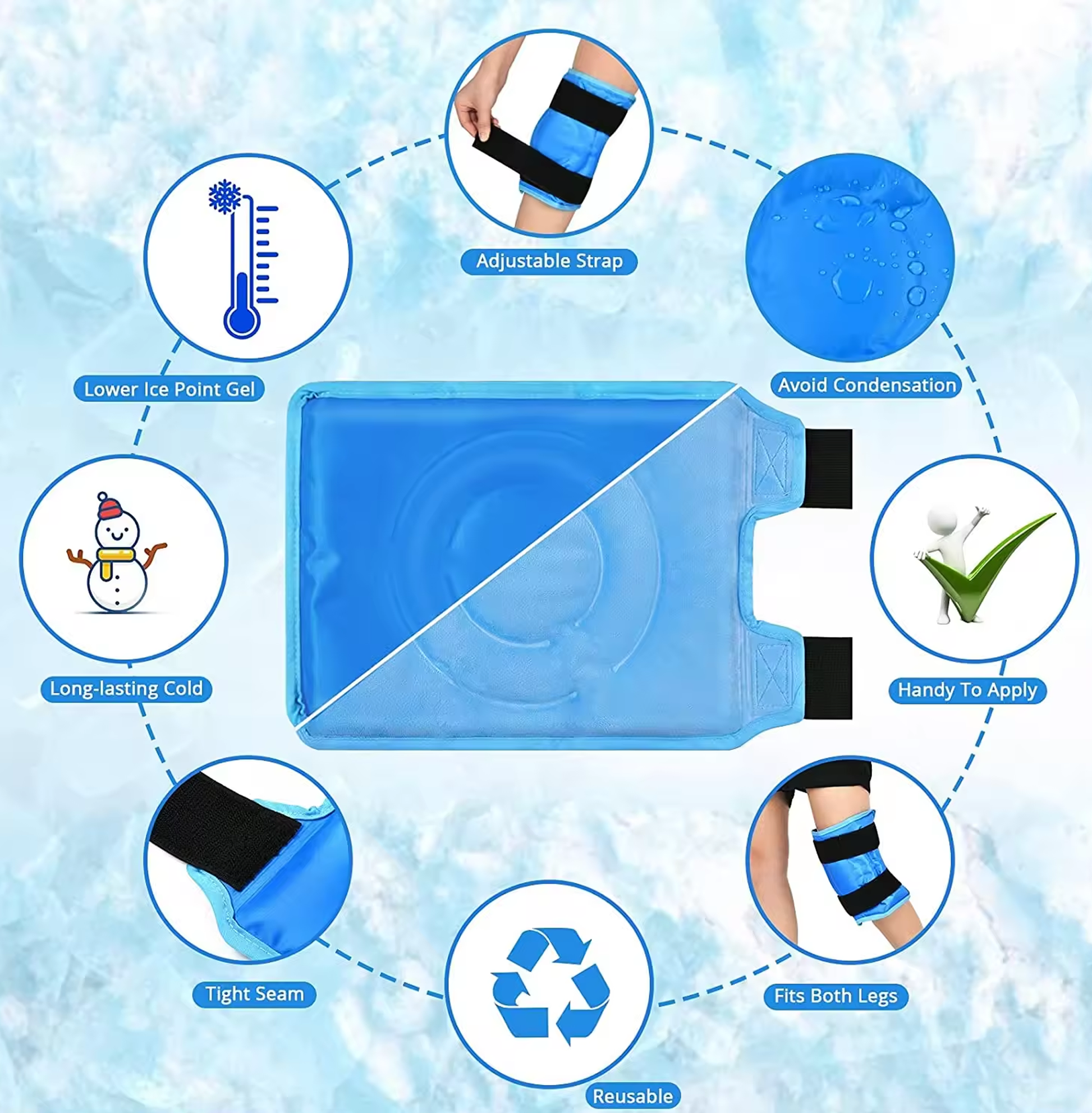 Our durable packs are filled with a unique, non-toxic gel that stays flexible when frozen to conform to wrap around the entire knee. The reusable gel ice pack provides up to 20 minutes of cold therapy to alleviate soreness following intense workouts, sporting events, and more.
