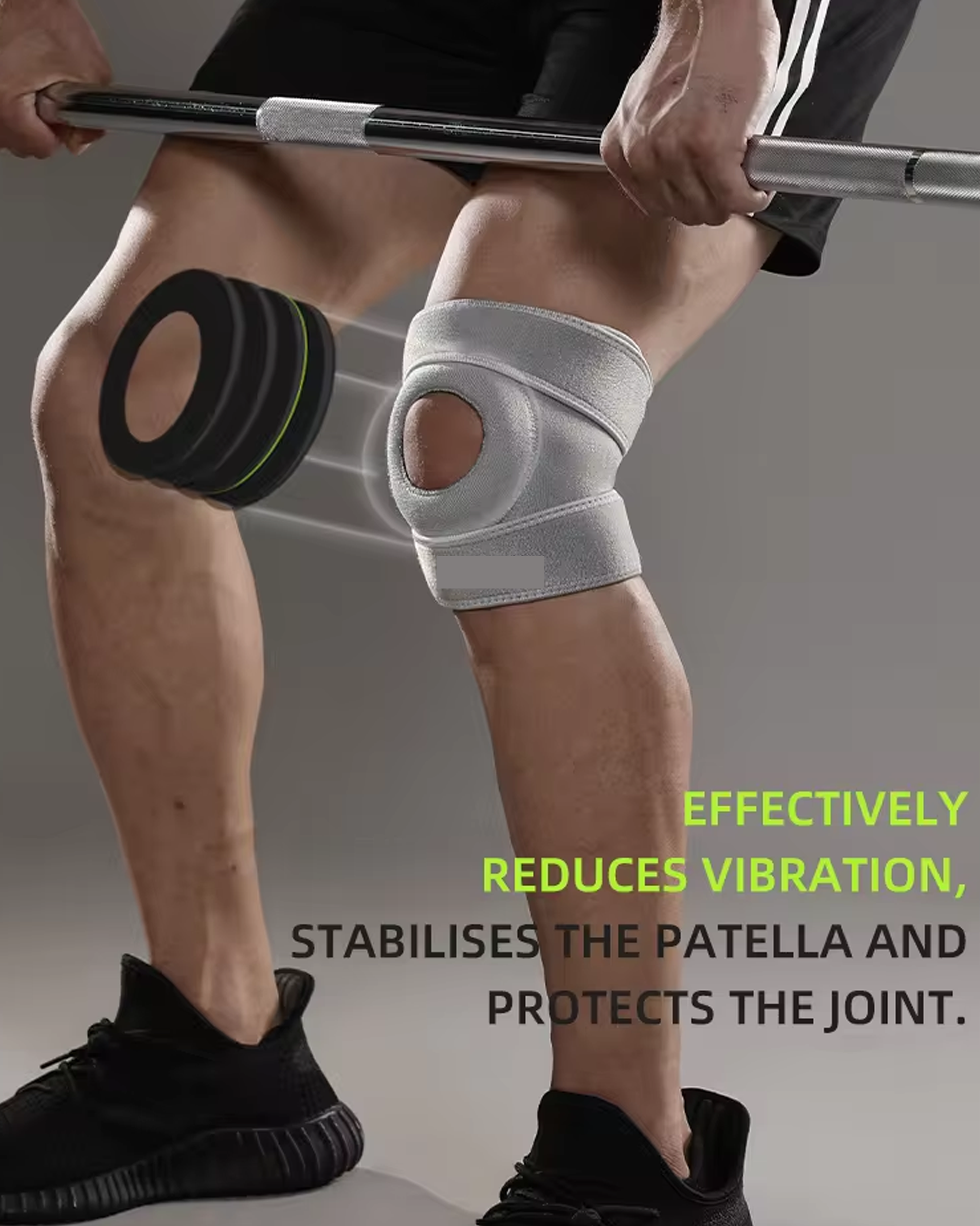 Description: Professional quality knee brace reduces vibration for joint stabilization & protection. Disperses knee pressure for superior comfort & relief.