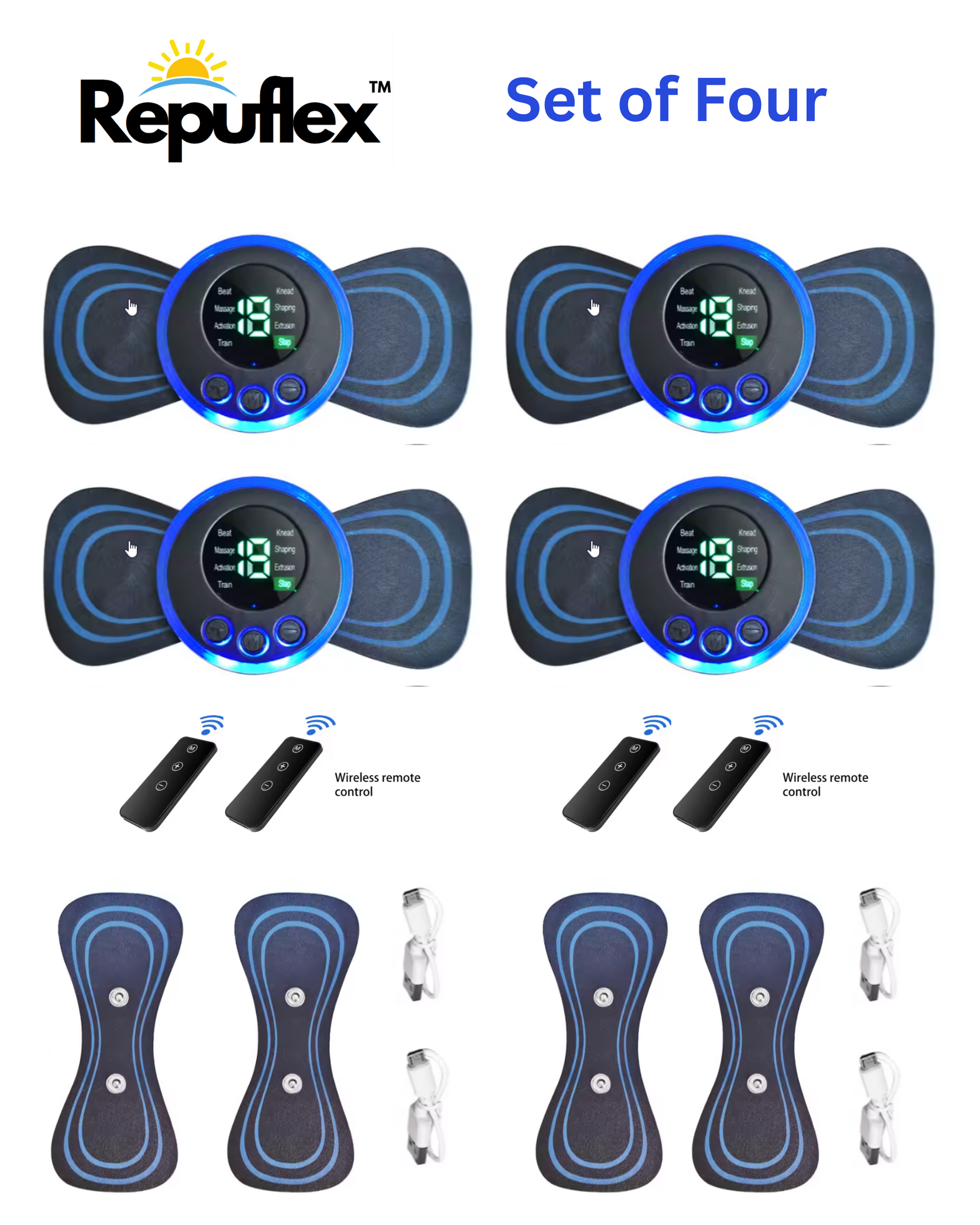 4 (Set of Four) - Wireless Body Massager with TENS + EMS Muscle Stimulator + 4 Extra Massage Pads.